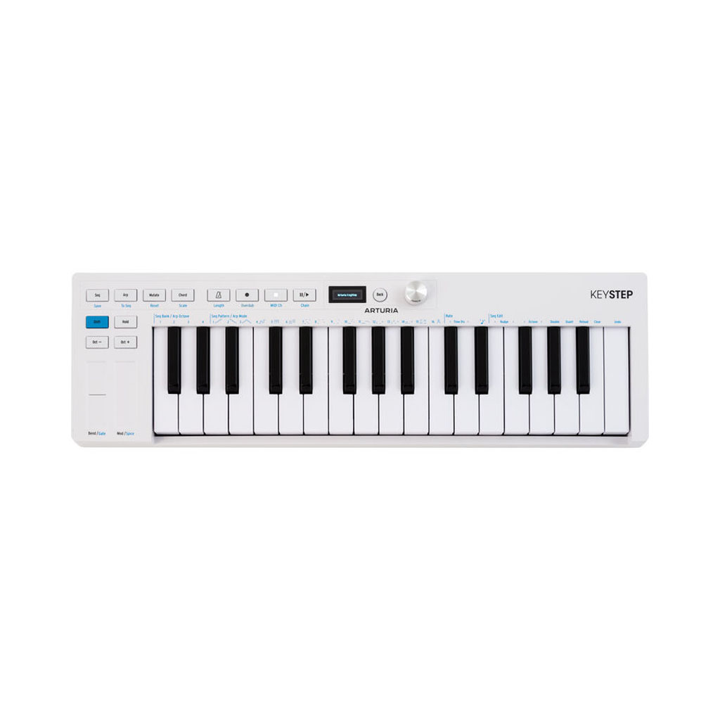 Compact and expressive, the Arturia Keystep mk2 is a portable USB-C MIDI controller keyboard and sequencer sporting 32 slim keys with both velocity sensitivity and aftertouch. Loaded with deep sequencing capacity—including 64 steps with eight-note polyphony, and an arpeggiator with nine patterns and 16 modes—this keyboard is a lightweight yet powerful idea machine.