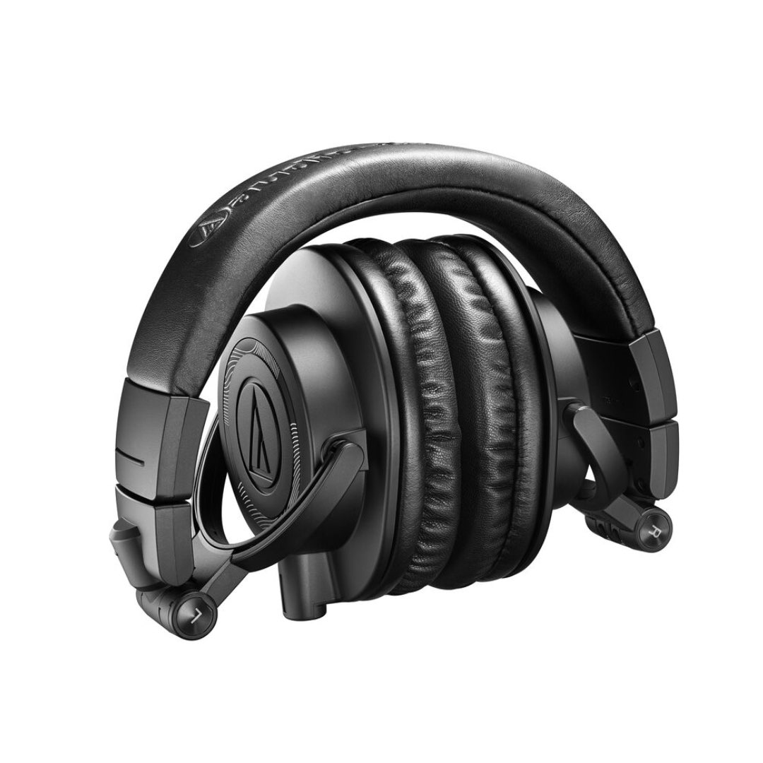 Widely acclaimed for their sonic performance, one-ear monitoring capability, and foldable, travel-friendly design, the black Audio-Technica ATH-M50x M-Series monitor headphones offer pro-grade build quality and audio performance for professional studio-based production, location recording, DJing, podcasting, and daily listening. Outfitted with 45mm large-aperture dynamic drivers and an over-ear, closed-back design, the ATH-M50x headphones deliver clarity, deep bass, and extended bandwidth (15 Hz to 28 kHz) while isolating you from outside sounds.