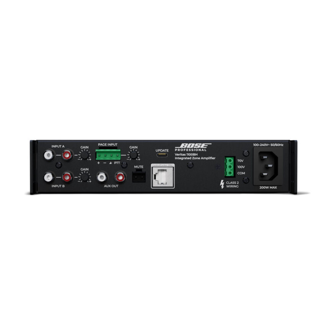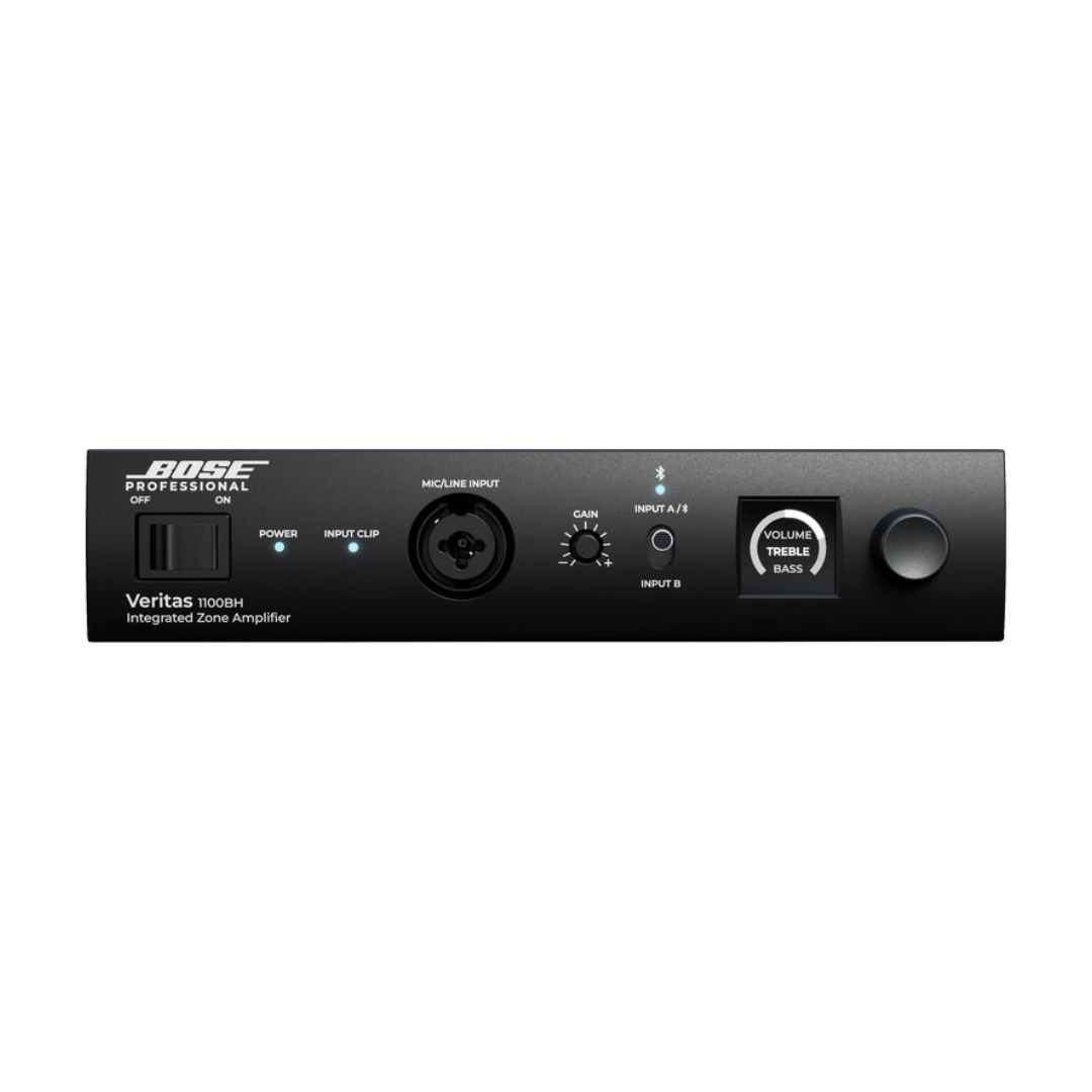 Delivering superior background/foreground music, paging, and multimedia for commercial applications, the Bose Professional Veritas 1100BH is an integrated zone amplifier and smart mixer that’s well suited for smaller distributed audio systems, background music, and paging applications. Professional installers and DIYers alike will appreciate the Bluetooth 5.0 wireless input and user-intuitive OLED screen with quick-start QR code for a simplified setup.