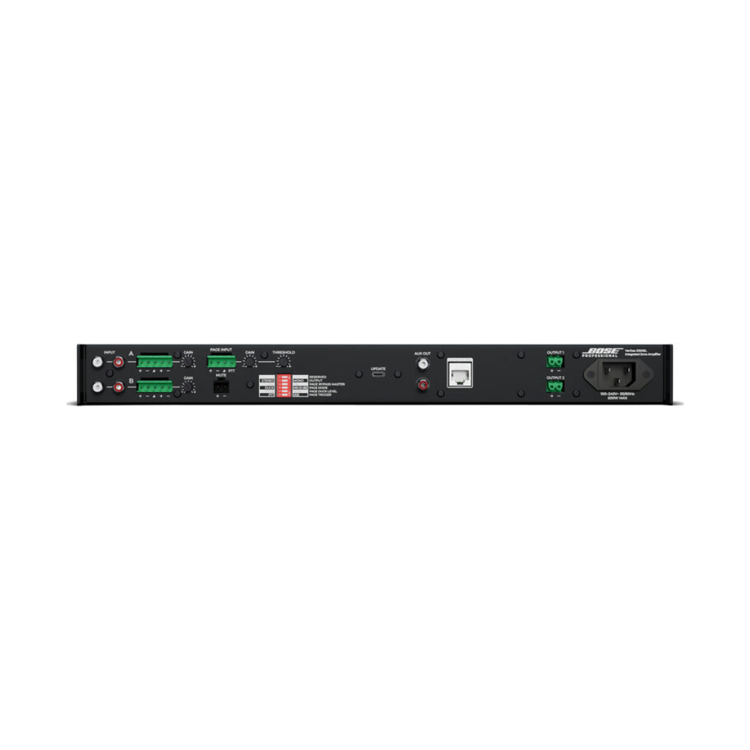 Delivering superior background/foreground music, paging, and multimedia for commercial applications, the Bose Professional Veritas 2160BL is an integrated zone amplifier and smart mixer that’s well suited for larger rooms, restaurants, and performance spaces.