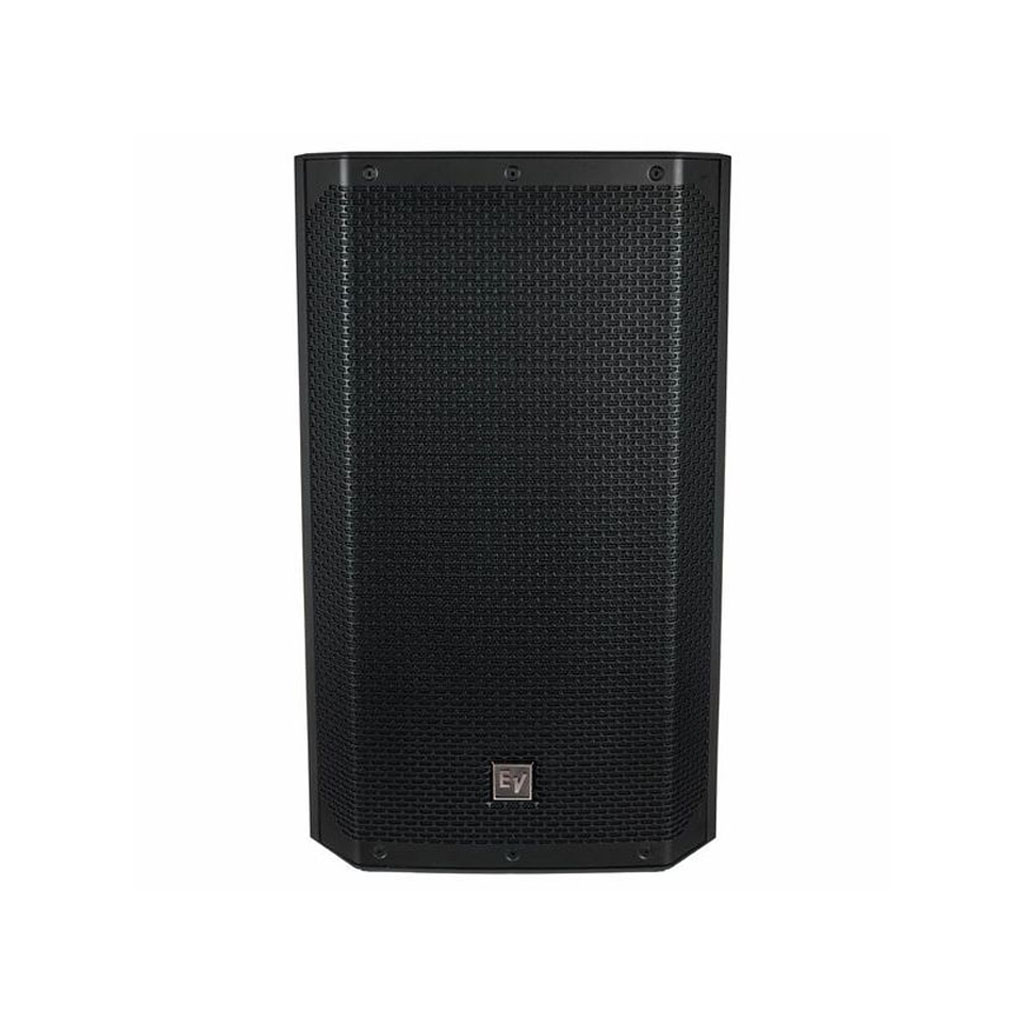 The black Electro-Voice ELX200-12 is a 12″ 2-way 1200W passive speaker designed to provide reliable, full-range frequency reproduction and flexible installation for sound engineers and performers in live stage applications, theaters, DJ setups, and mobile rigs. It has a 1200W power rating and features a 12″ woofer and a 1″ titanium high-frequency compression driver, yielding a frequency range of 51 Hz to 20 kHz (-10 dB) and a frequency response of 77 Hz to 17 kHz (-3 dB).
