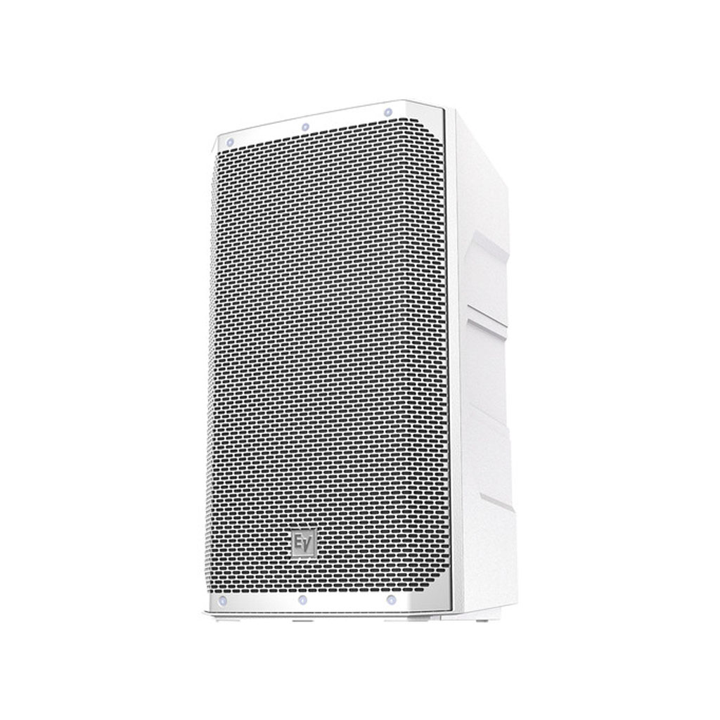 The white Electro-Voice ELX200-12 is a 12″ 2-way 1200W passive speaker designed to provide reliable, full-range frequency reproduction and flexible installation for sound engineers and performers in live stage applications, theaters, DJ setups, and mobile rigs. It has a 1200W power rating and features a 12″ woofer and a 1″ titanium high-frequency compression driver, yielding a frequency range of 51 Hz to 20 kHz (-10 dB) and a frequency response of 77 Hz to 17 kHz (-3 dB).