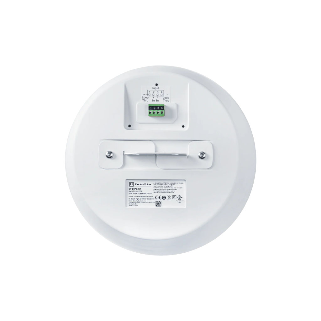 Each speaker is equipped with a line-matching transformer for 70V/100V operation, and a transformer tap-selector switch that includes 8-Ohm bypass operation, conveniently located on the front of the speaker. The EVID-P6.2 provides wide dispersion, high-efficiency, high-maximum output, ease of installation, and wide-range reproduction of music or voice.