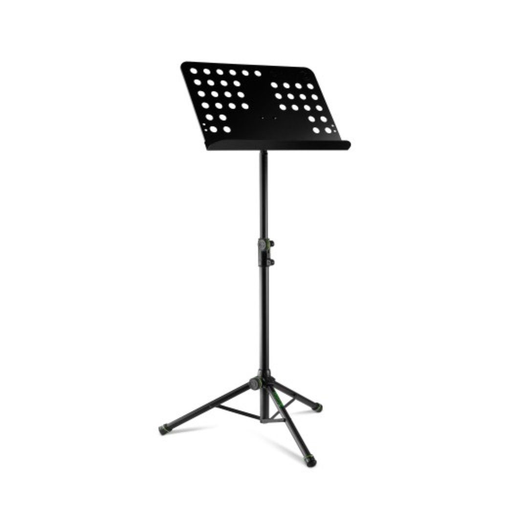 This music stand is based on a classic design. Attention was given to details such as the support joint which is made of die-cast material for a precise fit, the base connector and the height adjustment. Utilising the Gravity-typical ergonomic set screw knobs – made from high-grade ABS with a soft touch, non-slip thermoplastic coating and heavy duty metal joints, this stand is designed to withstand harsh treatment in the everyday life of a musician.