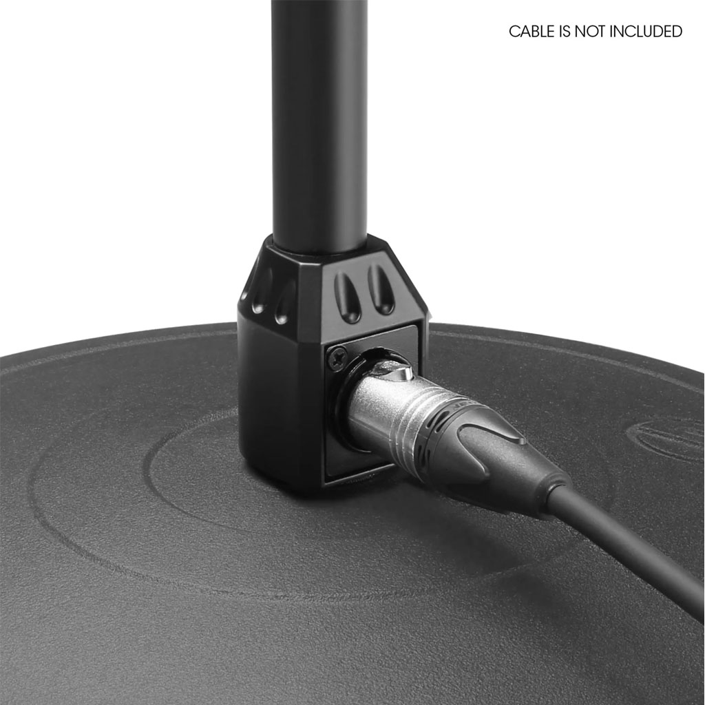 The gooseneck integrates a 3-pin female XLR connector for directly attaching a microphone while the tube sports a lateral XLR mic cable connector at the bottom end. This permits quick, clean setup without mic clips and running the cable up the stand.