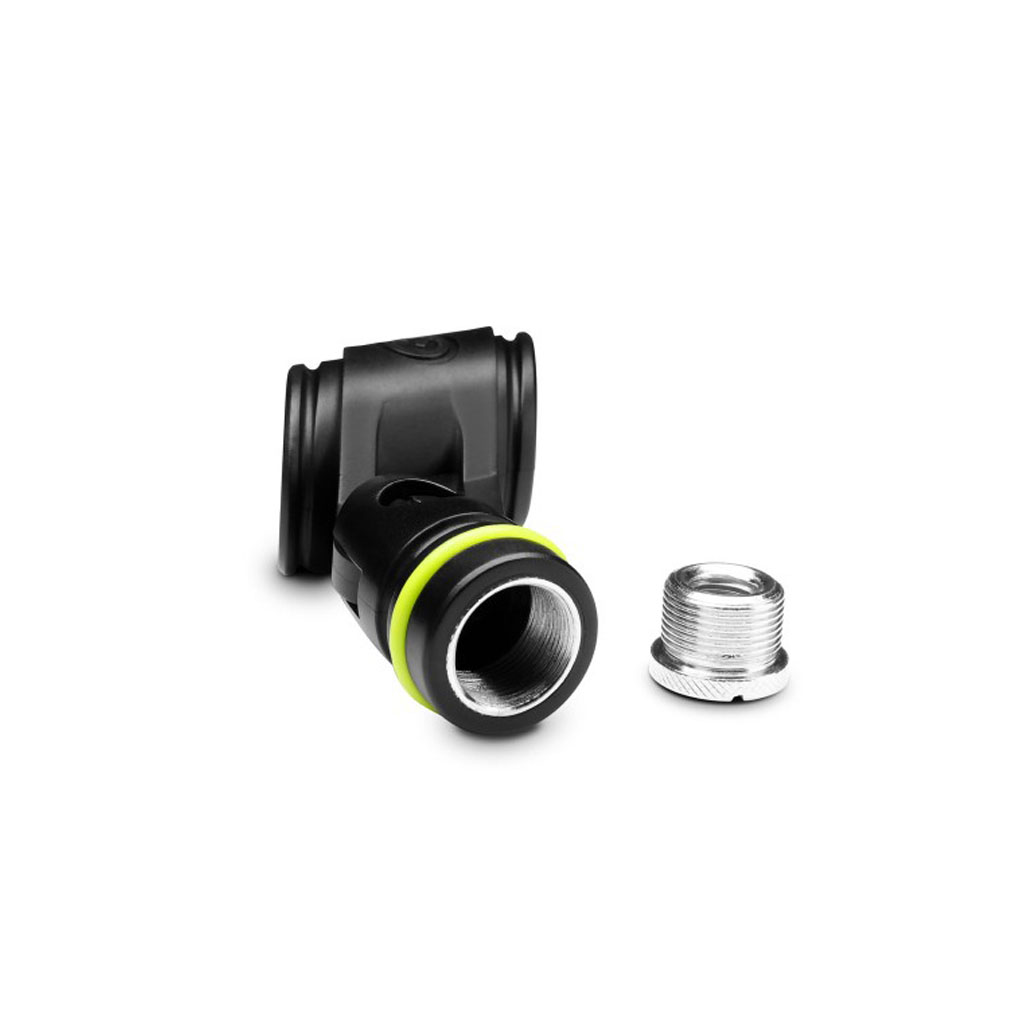The GMSCLMP 25 is compatible with most handheld dynamic microphones and acommodates shaft diameters from 24 to 35 mm. The unbreakable clip holds your mic firmly in place and swivels to aim it as needed. The Gravity microphone clip includes a 3/8″ adapter.
