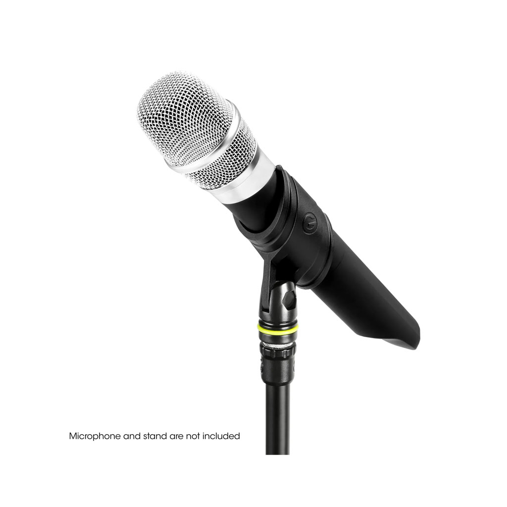 - Firmly holds wireless microphones with shaft diameters from 34 to 42 mm