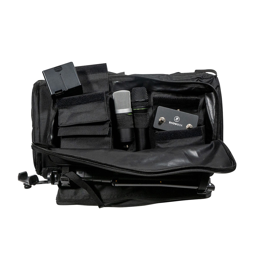 Carry everything you need for the performance with the Mackie ShowBox Gig Bag, a custom-designed carrying bag that provides protection from on-the-road wear and tear. The bag holds and protects the ShowBox battery-powered personal PA system as well as lots of other gear and accessories.