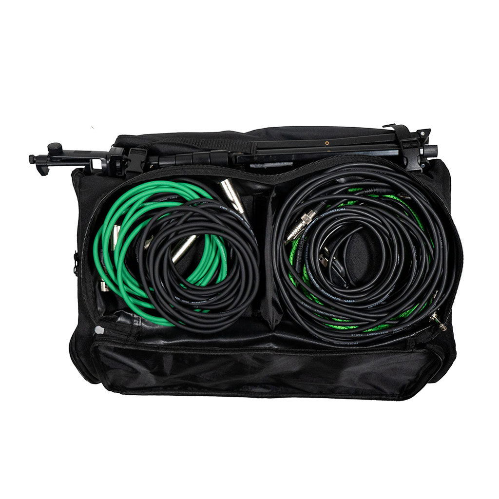 Strap your mic stand to the side of the bag and store your mics, cables, spare batteries, guitar picks, and more in the pockets. Padded straps and mesh design allow plenty of ventilation and comfort when used as a backpack, or grab the side handle to carry your entire live setup by hand.