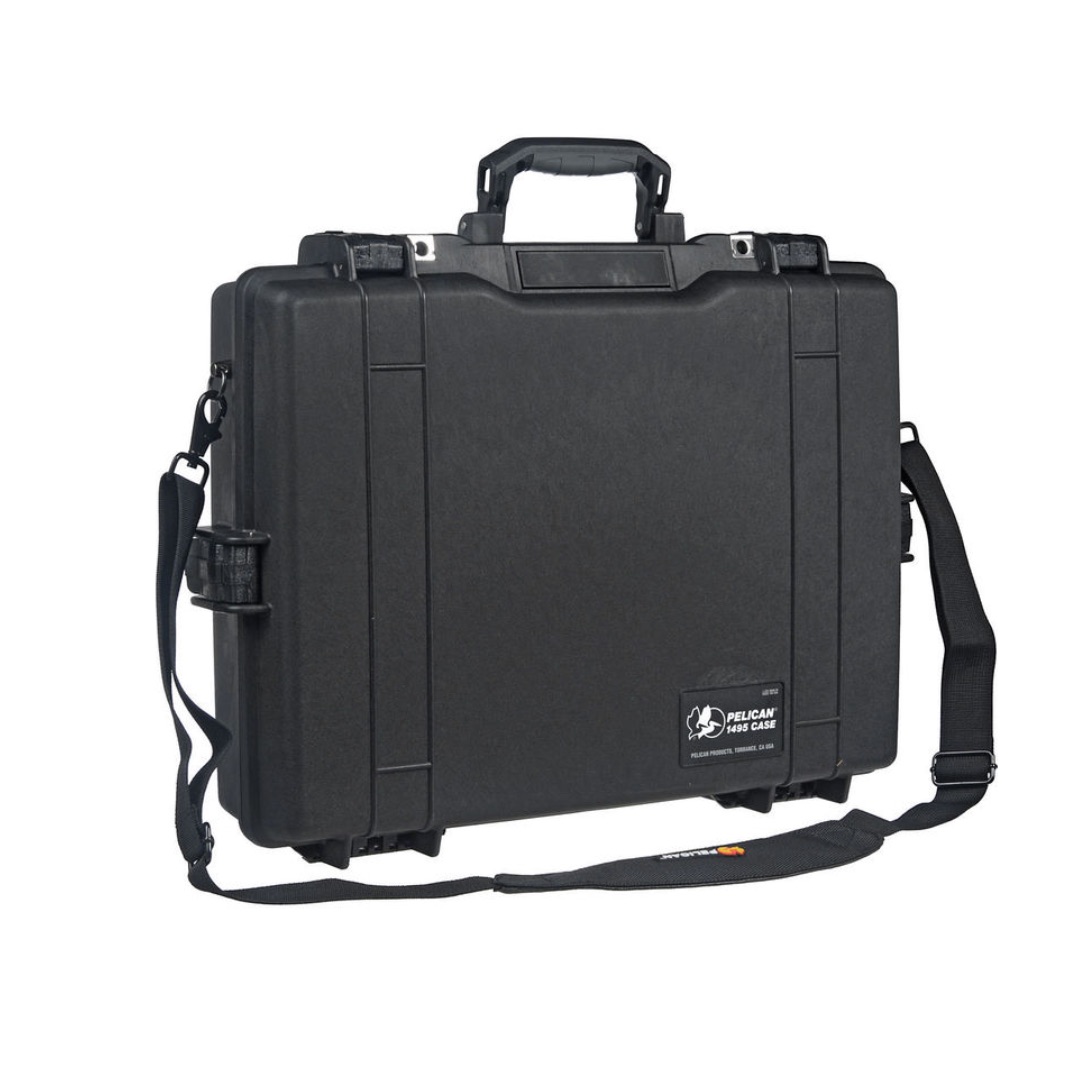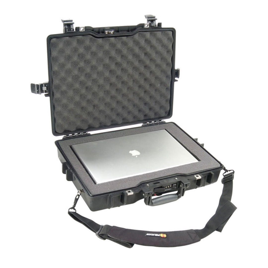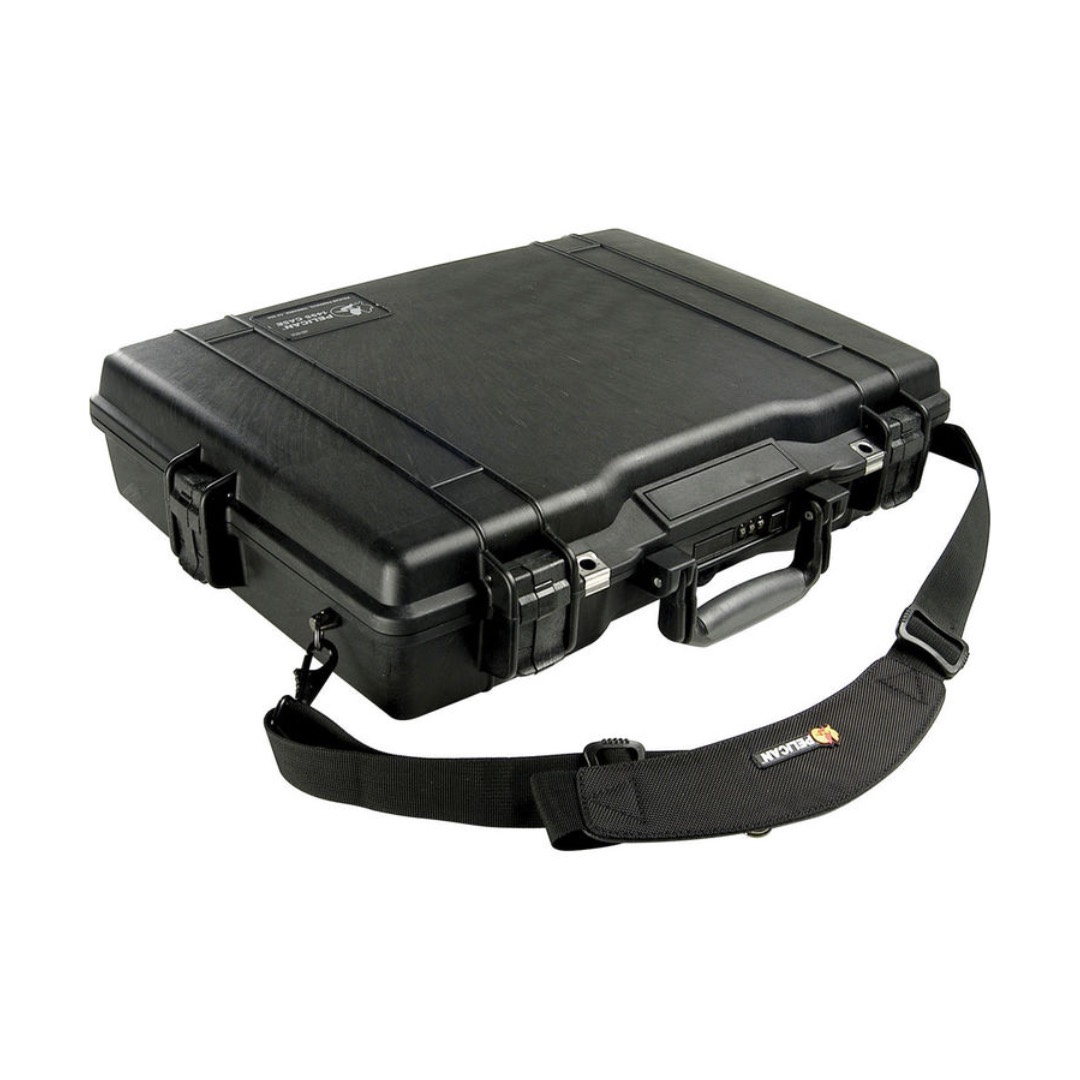The 1495 Protector Laptop Case from Pelican is dust, crush, and waterproof with a slim attaché design. Chemical and corrosion resistant, it is made from ultrahigh-impact structural copolymer polypropylene for strength and durability. The automatic pressure equalization valve ensures it remains easy to open, even after changes in altitude or temperature. Carry options include the comfortable, folding rubber top handle and a removable, padded, ergonomic shoulder strap. The interior features base and lid foam layers plus a pick and pluck foam section for customized and organized protectio