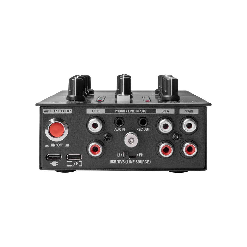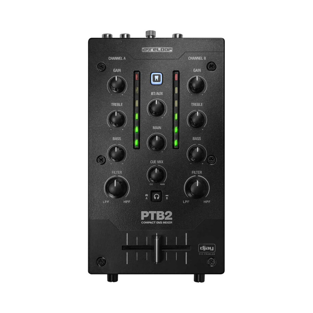 The PTB-2 Portable 2+1-Channel DJ Mixer with DVS and Bluetooth Interface from Reloop is a portable, yet sturdy DJ mixer and audio interface, allowing creators and audio engineers the ability to create high-quality musical mixes or audio routing for other production needs, with easy transport and set up.