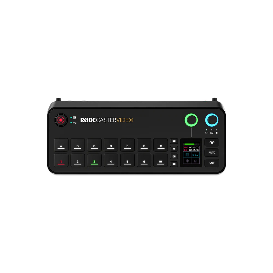 Designed to excel in a wide variety of production applications—social media, streaming, podcasting, and live events—the RODECaster Video blends the best of HD video switching technology with the familiar studio-grade audio control of previous RODECasters. The console offers intuitive control over both video and audio sources with its onboard controls, 2″ touchscreen display, and rotary encoder. A variety of connectivity options, including HDMI and USB-C ports, accommodate UVC video sources as well as both analog and digital audio sources. Up to 20 possible audio sources, or nine stereo channels, can be connected to the RODECaster Video using both wired and wireless connections. Add the RODECaster Video to your preexisting RODE audio ecosystem using the USB-C audio ports or RODE Central software for advanced device configuration.