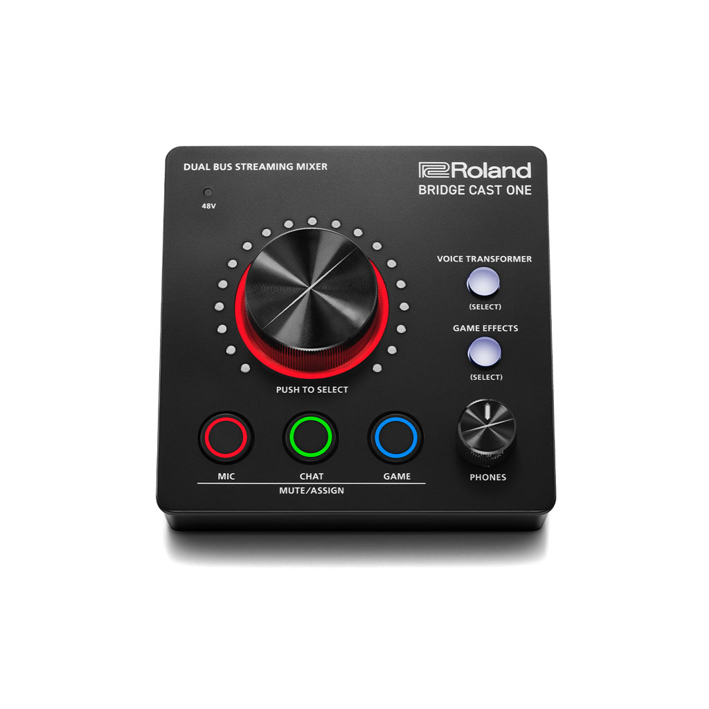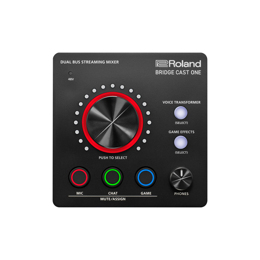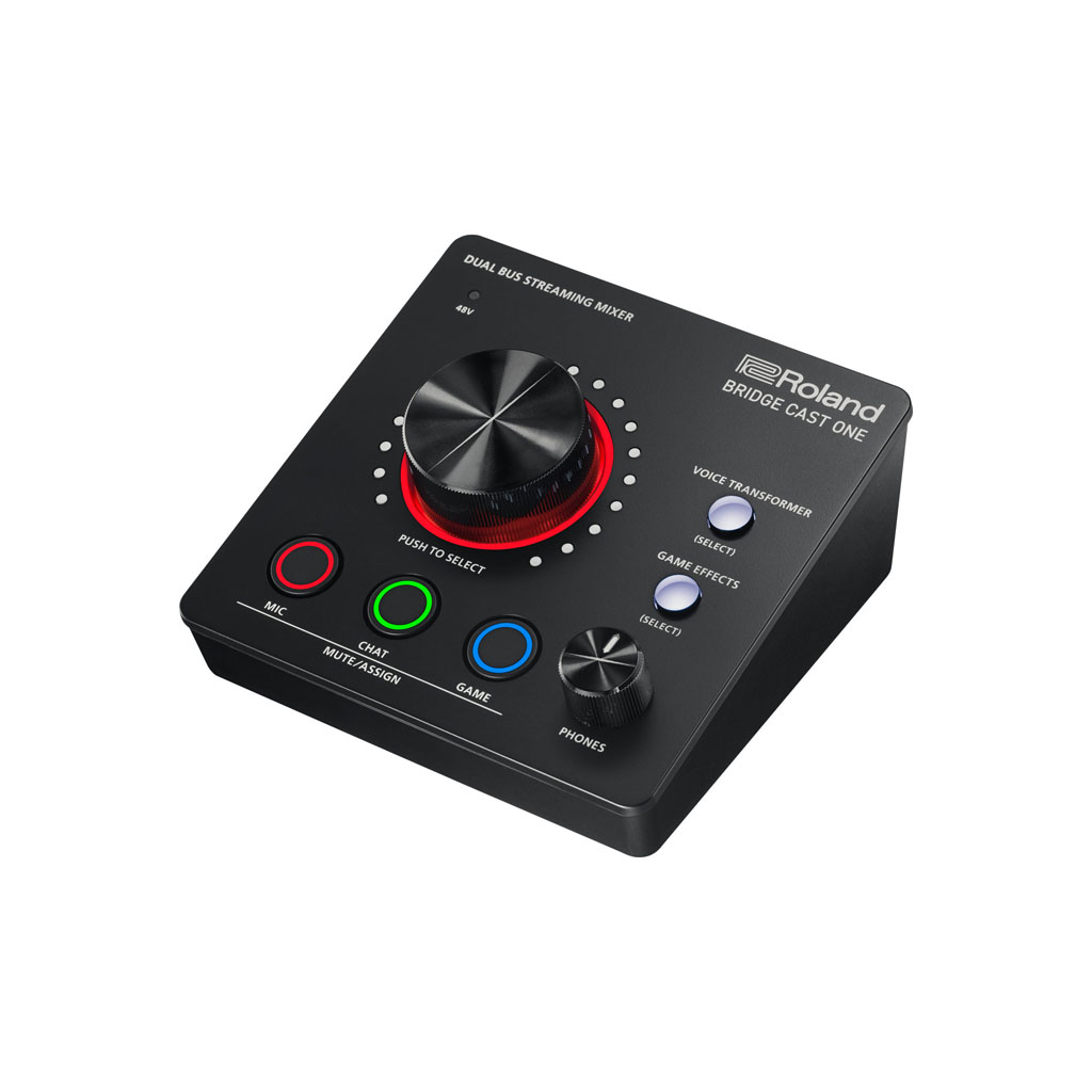 Level up your gaming and streaming sound with BRIDGE CAST ONE, a compact livestreaming audio mixer with hands-on controls. Gain a competitive advantage with powerful features like dual bus mixes, vocal transformer effects, fast-access presets, and support for a broadcast-grade mic and headphones. For even more control, the companion BRIDGE CAST app offers extended audio tools and royalty-free background music and sound effects through BGM CAST on Roland Cloud.