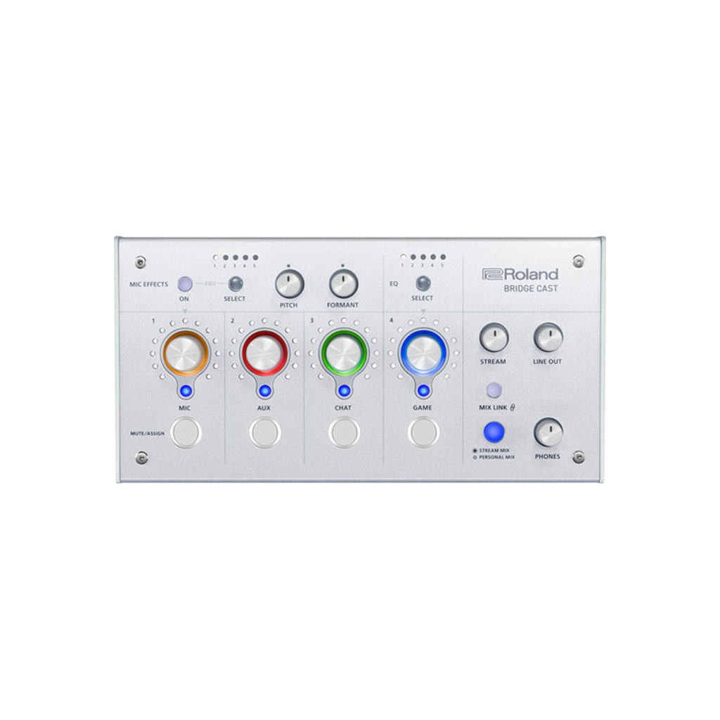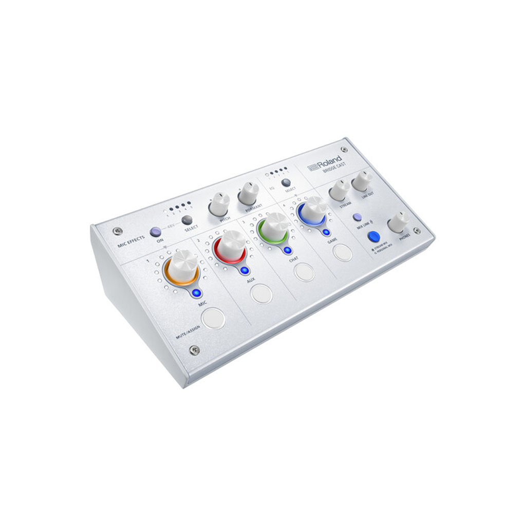 Professional gamers need professional tools and that’s why Roland is proud to introduce the BRIDGE CAST (Ice White), an all-in-one, dual-bus, premium gaming mixer designed to take your livestreams and game audio to the next level. The BRIDGE CAST is USB-C bus powered and packed with unique and useful features including dual sound mixes, vocal transformer effects, music playback, 32-bit floating point DSP FX processing, up to 24-bit / 96 kHz sampling, and support for broadcast-grade mics and headsets.