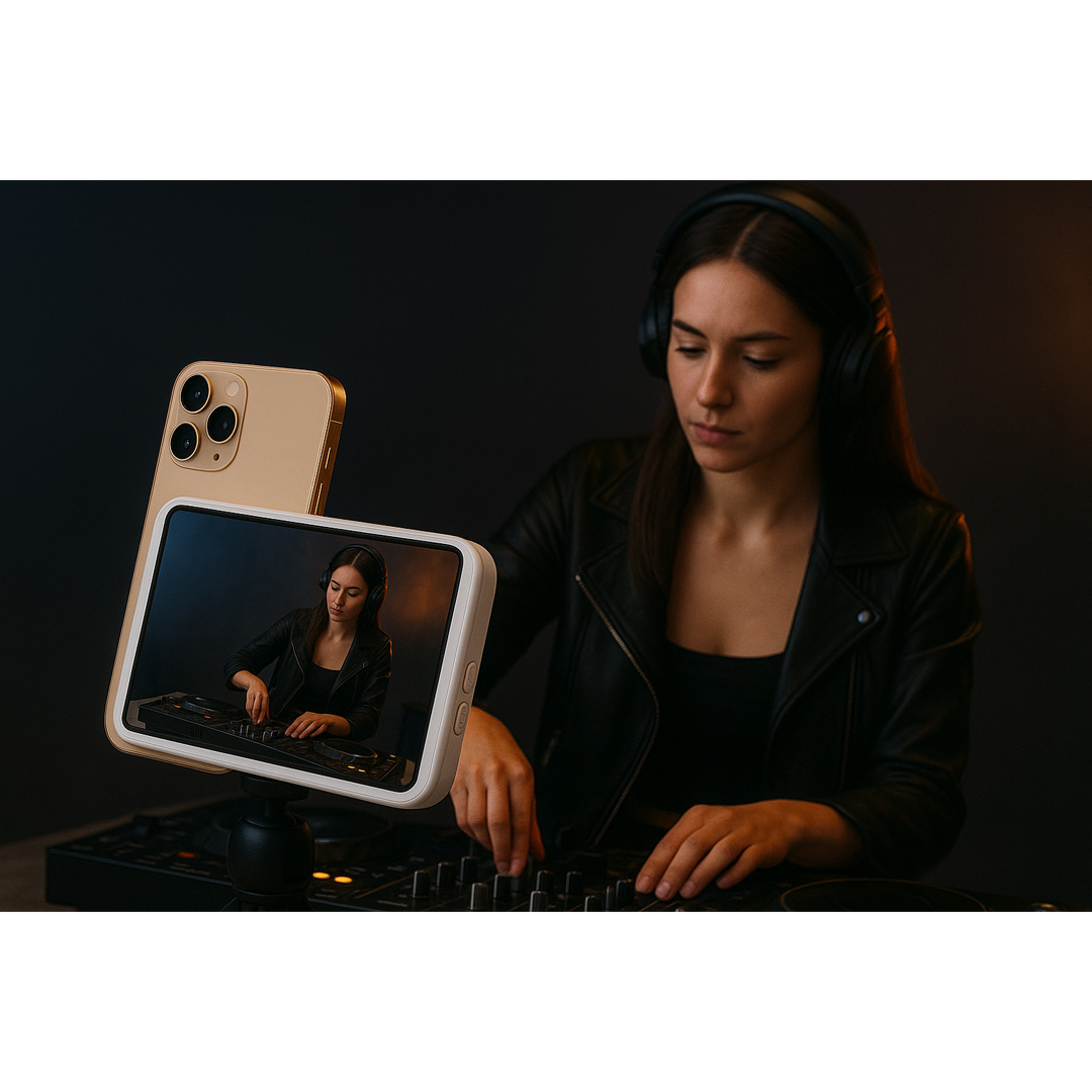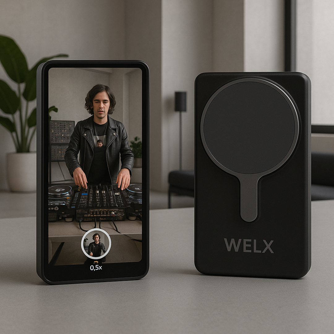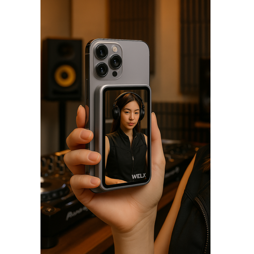 Step up your self-recording game with WELX VISION – the MagSafe-compatible wireless HD monitor designed for creators who demand pro-level results without the hassle. Whether you’re a DJ, content creator, live streamer, or mobile filmmaker, this compact 4-inch display puts your iPhone’s best lens (yes, even the ultra-wide) in full view — so you can record yourself with confidence and perfect framing every time.