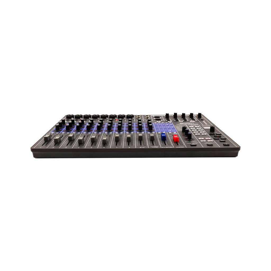 Each mono input channel features a 60mm fader, three multifunctional encoder knobs for analog-style gain, EQ, compression, panning, or FX send control, mute, solo, and pad control. 48V phantom power can be activated in groups of four. Hi-Z mode can be switched on for each mono channel for passive instrument inputs like guitars and electric keyboards. An OLED screen streamlines digital control. The recorder can capture 14 tracks in up to 24-bit / 96 kHz, recording to either the internal memory or an SD card, and stereo master bus capture can be performed in crisp 32-bit float. 16 onboard FX keep things lively and creative, with useful reverbs and delays that are ideal for live rehearsals and performances. The mixer also supports wireless mix control via the L12next Control app.